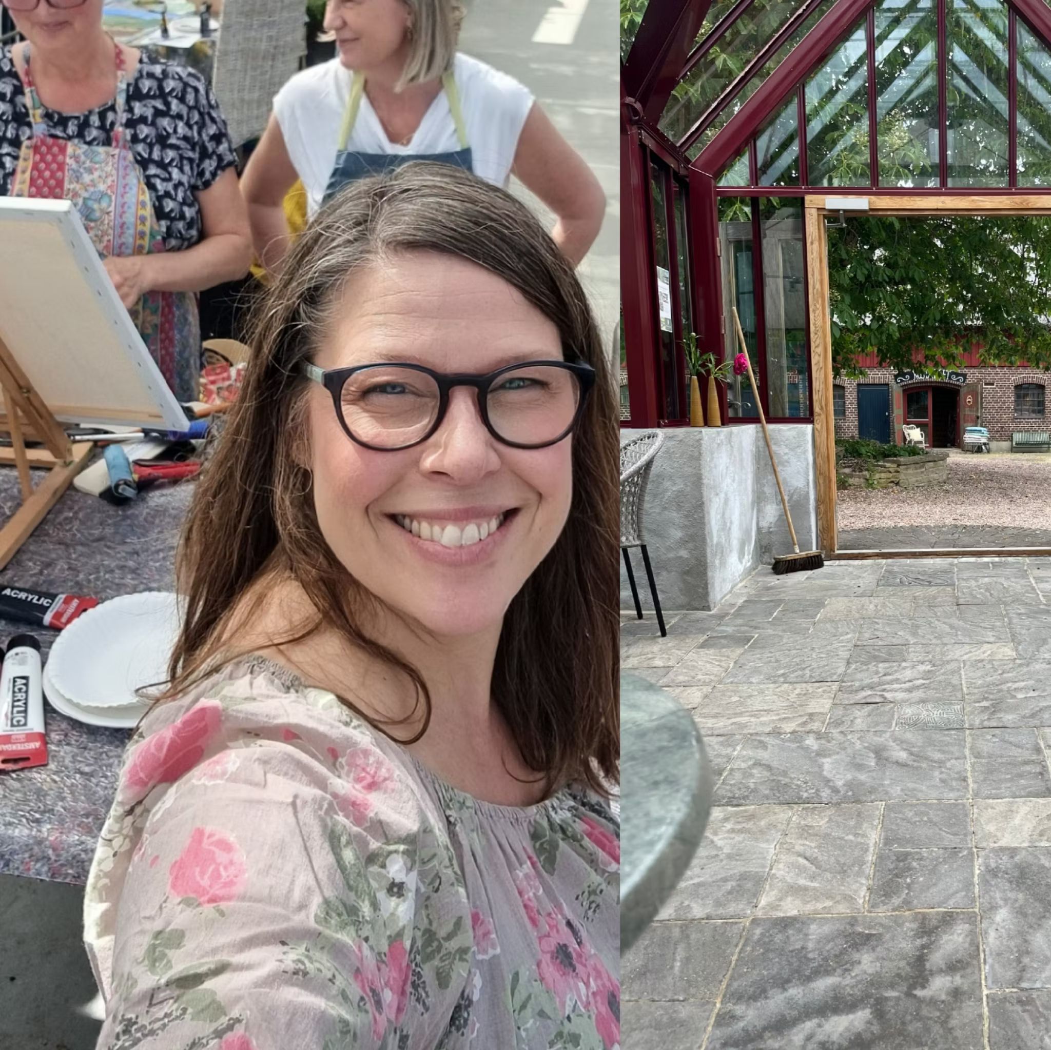 Vi möts i Skaparbubblans orangeri med generöst ljusinsläpp – nästan som den bästa sortens ljusterapi efter vintern. Runt oss har vi en lugn atmosfär i gårdsmiljö nära naturen.